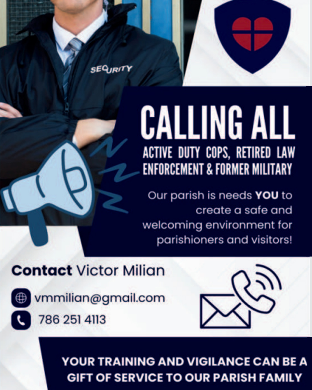 ¡Nuestra parroquia TE NECESITA para ayudar a crear un ambiente seguro y acogedor para feligreses y visitantes!
